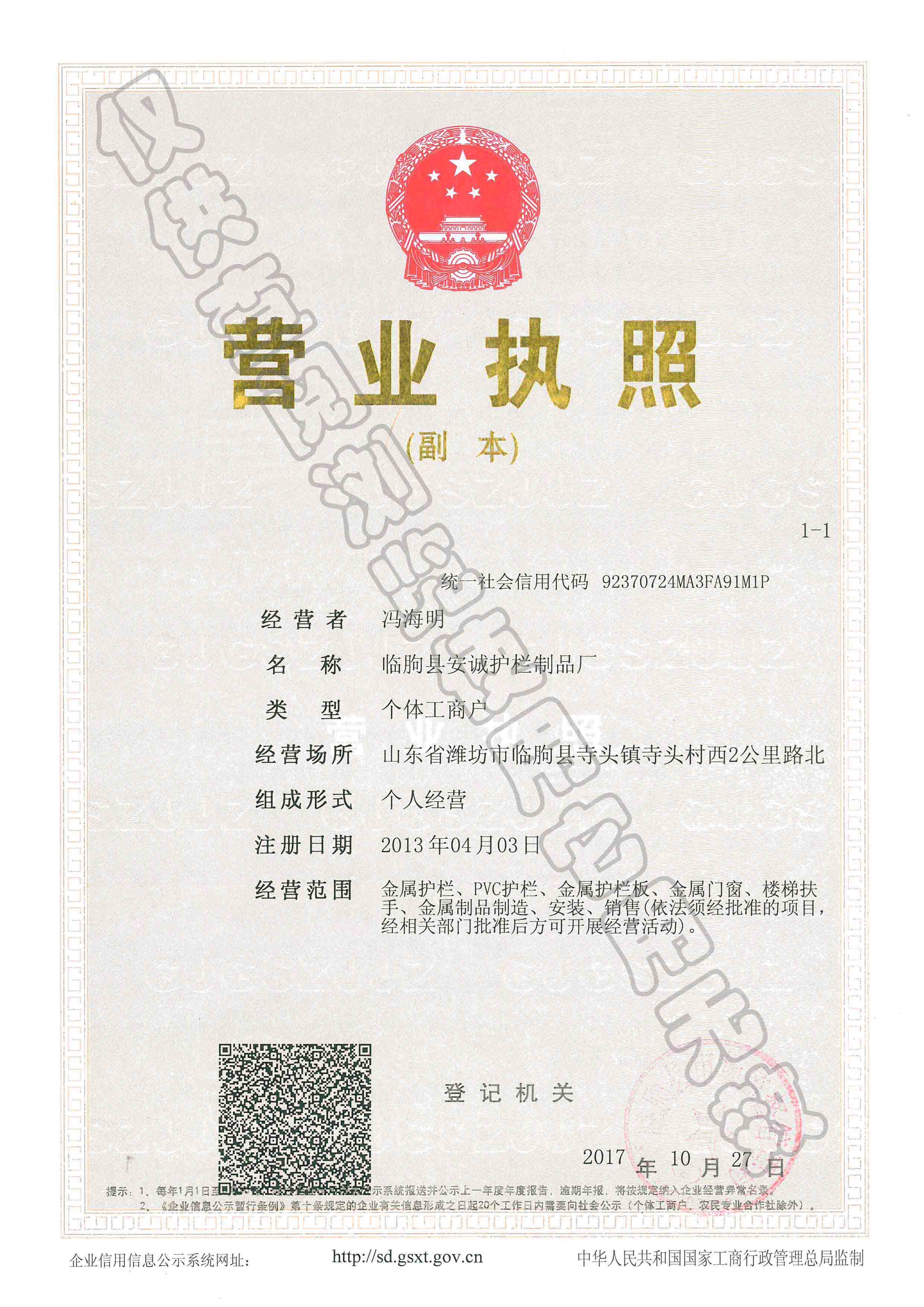 關(guān)于我們.jpg      臨朐縣安誠(chéng)護(hù)欄制品廠(chǎng)生產(chǎn)的圍墻欄桿暢銷(xiāo)全國(guó),產(chǎn)品包括:鋅鋼護(hù)欄、鐵藝護(hù)欄,鍍鋅護(hù)欄、百葉窗,公路護(hù)欄、橋梁護(hù)欄、陽(yáng)臺(tái)護(hù)欄,鐵藝大門(mén)、電動(dòng)伸縮門(mén)、道路護(hù)欄、綠化欄桿、鐵藝圍欄、鐵藝欄桿、遠(yuǎn)景圍欄、鐵藝圍墻、欄桿、護(hù)欄、圍欄、柵欄等鐵藝制品、園林工程。系列產(chǎn)品的設(shè)計(jì)與施工。是家集設(shè)計(jì)、生產(chǎn)、銷(xiāo)售、安裝于身的大型私營(yíng)企業(yè)。主要經(jīng)營(yíng)護(hù)欄、大門(mén)、園林工程等。